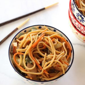 - 8 ounces whole wheat linguini or lo mien noodles